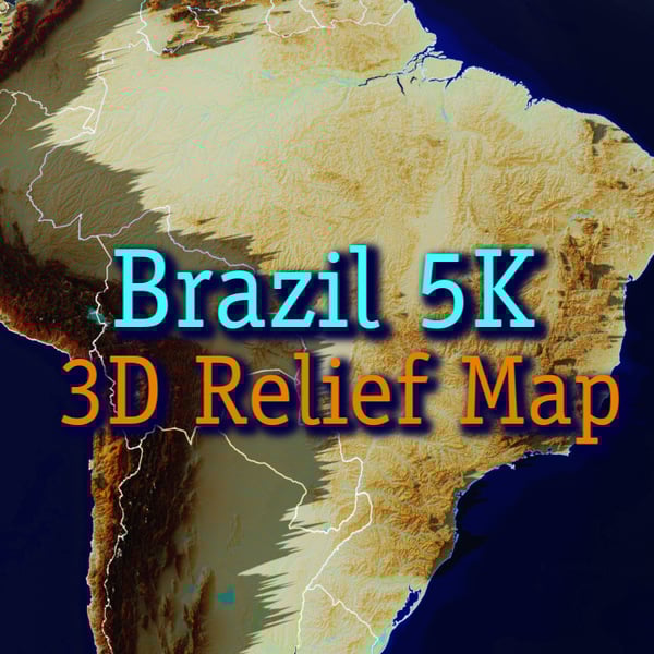 Brazil 5K 3D Relief Map – High Resolution Terrain & Rivers (3 Images)